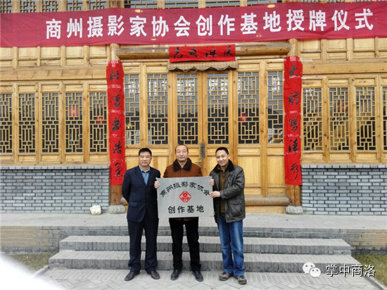 1月2日,商州区摄影家协会30名摄影家走进基层,来到位于区沙河子镇的志笃文化生活体验馆,开始了2015年的第一次摄影创作,并在该体验馆建立起摄影创作基地。(记者 杨鑫 摄) 商州摄影家协会主席阮世喜和商州区文联副主席陈明玉为志笃文化生活体验馆授牌并合影。