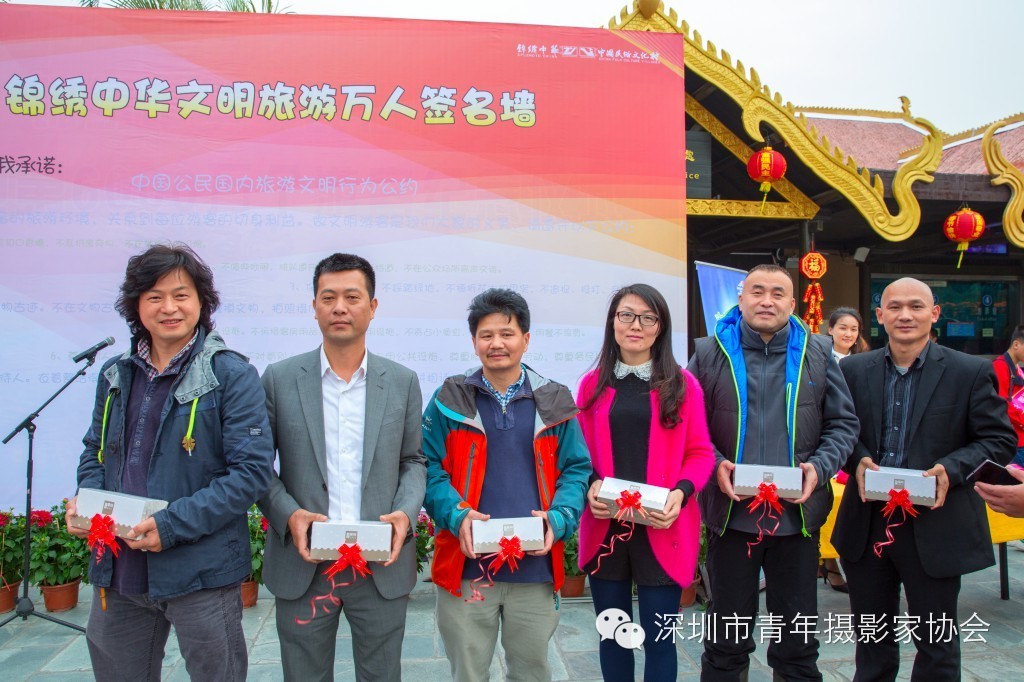 2015年2月11日下午,“畅游深圳,我为文明旅游点赞”活动、深圳旅游明信片“全球寄”启动仪式暨青影协风光摄影明信片捐赠仪式,在深圳锦绣中华•民俗文化村广场举行。 深圳市政府吴以环副市长、黄国强副秘书长、市文体旅游局张合运局长、杨永群副局长、南山区委常委、常务副区长罗育德、深圳新闻网总编辑王尧、青影协文建军主席等出席了活动。 深圳青影协摄影服务队为此次活动提供全程义务摄影摄像记录服务,活动当天,组织了五个服务队共五十余名会员参与摄影。协会广大会员发扬此前承办“影像深圳”摄影大赛的专业服务精神,用饱含激情的影像创作,为深圳旅游和城市发展点赞。 深圳市政府吴以环副市长与青影协文建军主席亲切交流,指导协会工作。 深圳市政府吴以环副市长等领导莅临本次活动现场 深圳市政府吴以环副市长等领导莅临本次活动现场 少数民族特色表演 少数民族特色表演 少数民族特色表演 青影协向旅游企业代表赠送深圳旅游明信片 青影协向旅游企业代表赠送深圳旅游明信片