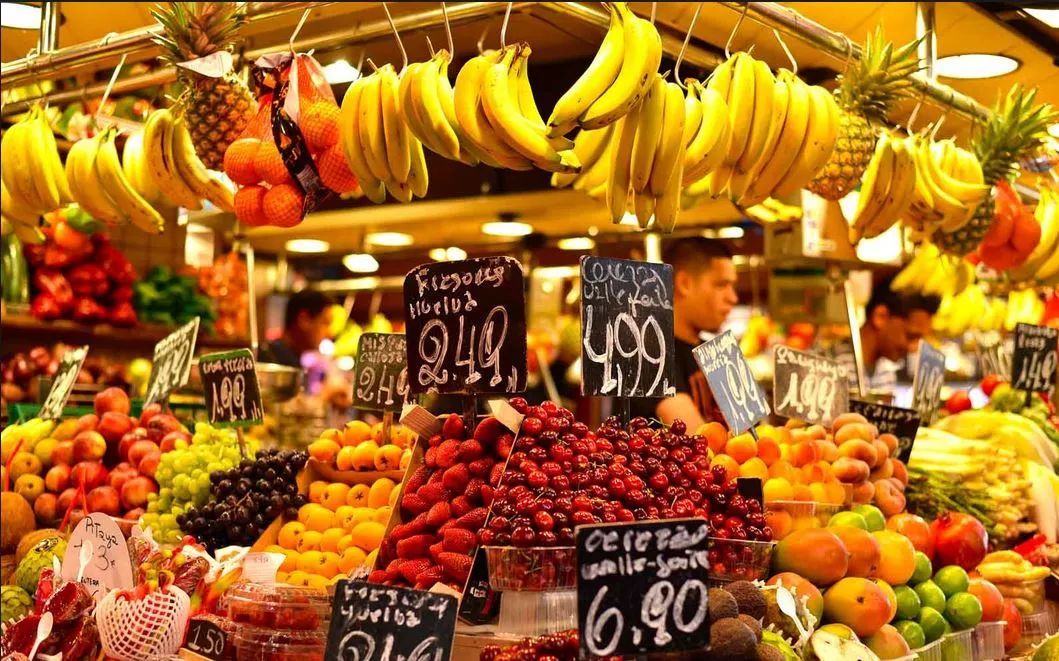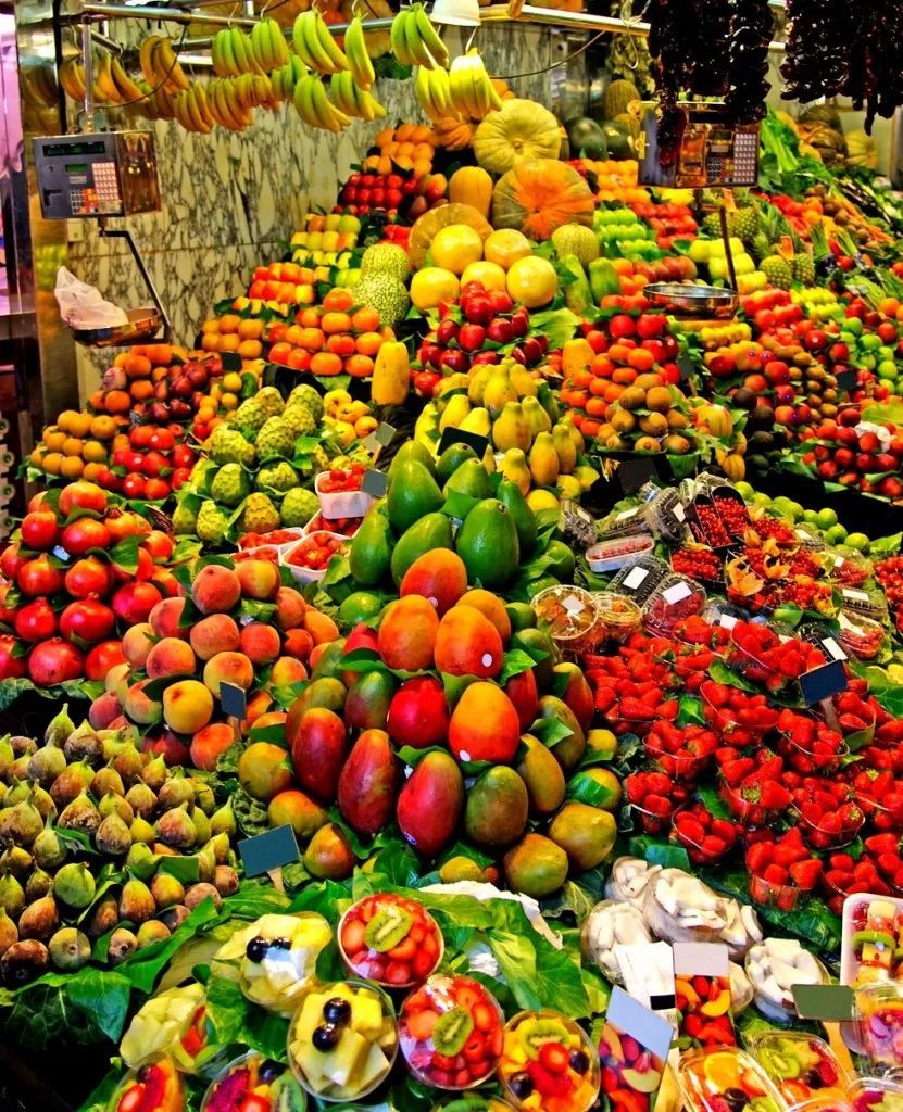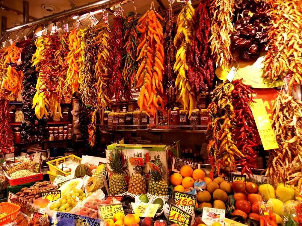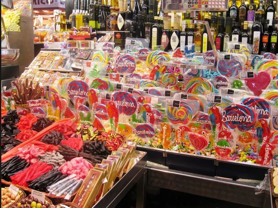 商贩们几乎将摊位当做艺术品来经营:每颗水果都衬着绿叶,各式蜜饯精致堆叠,标价牌清晰活泼。摊位上货品的摆放的颜色搭配都颇为用心,精彩程度丝毫不亚于离它不远处高迪古埃尔宫屋顶形式各异的烟囱。