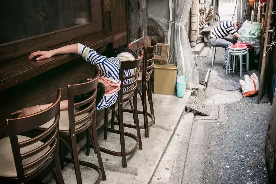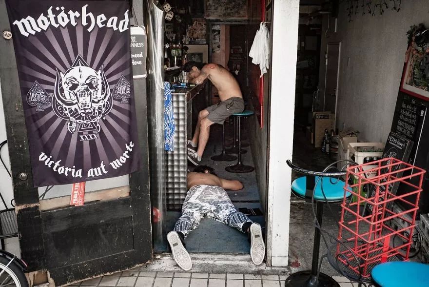 这组照片源自摄影师、Tokyo Times 的创始人 Lee Chapman。Lee 来自英国曼彻斯特,1998年来到日本,打算呆上“一到两年”,结果再也没有离开过。Lee 的作品展现了一个超乎人们想象的日本。说起日本,人们通常会想到花花绿绿的 cosplayer 和黑夜里的霓虹灯;但照片中喝的醉醺醺的人们在光天化日之下躺倒在街边,打着呼噜、衣衫不整,让人们看到了一个完全不同的日本。