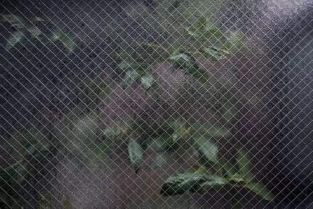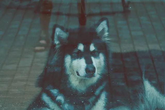蓝色,让这只阿拉斯加的神情充满了忧郁 特殊纹路 如前文所述,当玻璃具有规律性纹路时,可以形成近似框架式构图的作用;但当玻璃具有特殊纹路时,这些纹路本身就能创造出很棒的特效。 其中,最典型的就是雨天的玻璃。流动的水珠形成了临时性的、不规则的特殊纹路;隔着带着水珠的玻璃向外拍摄,景物会在水珠和水流的作用下发生变形,光源会变成弥散的光斑,别有一番风味: