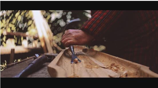 我想用背景光斑来衬托刻刀在雕琢古琴时的木屑,选用了美图V6的旋转光斑模式,从画面上看更有动感。 杨广先是在自己的家中做,后来因为城市噪音影响做琴的氛围,便选择远离闹市。龙泉山风景秀丽空气适宜,于是杨广自己来到山林,在这里隐居专心制琴,彼时他自己制作古琴已有7年。女儿时不时的会给他送些蔬菜与大米等生活必须品。