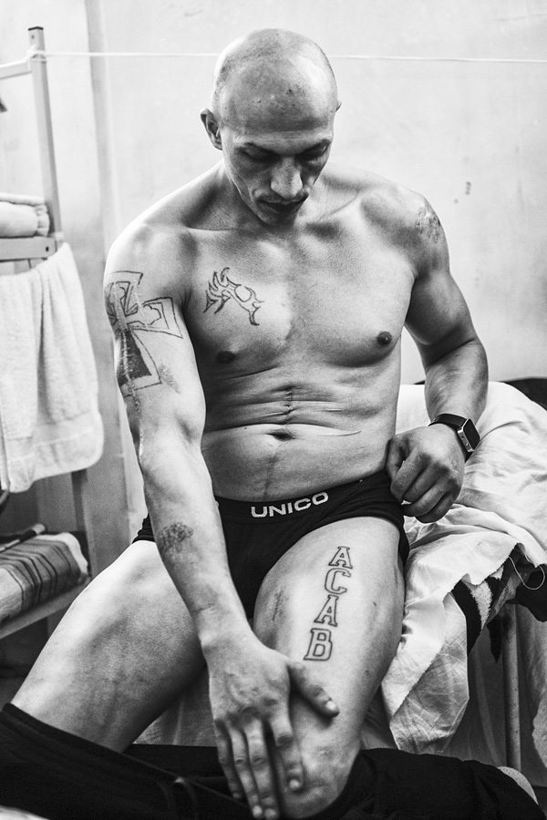 | 克罗地亚摄影师 Igor Coko 与贝尔格莱德郡监狱合作,获准进入监狱拍摄犯人们的日常生活。作为犯人了解艺术的活动之一,整个拍摄计划持续了约三年。这也是塞尔维亚摄影史上首次披露该国监狱中的真实生活,而未经官方的细节审查。贝尔格莱德郡监狱是巴尔干地区最大的监狱之一,距市中心约几英里,里面关押了约300名犯人。Coko 所拍摄的部分位于5-1监区,这个区域的犯人每天有2个小时的放风时间。他用相机捕捉生活的敏感,特殊社会群体的隐秘生活,作品被刊登在国内及欧洲各地的杂志及报纸,同时还在美国、西班牙、法国等地举行展览。 |