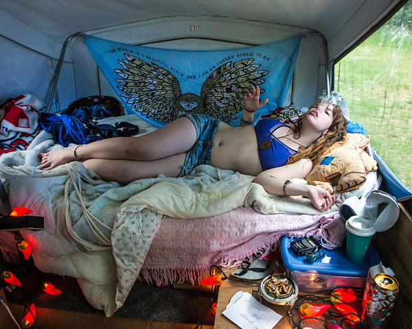 (Betty,88岁,“我丈夫死了,现在我能在卧室抽烟了”) Barbara Peacock,美国女摄影师,曾荣获2017年Getty Images摄影奖,她的官方网站:www.barbarapeacock.com 这组作品名为American Bedroom,目前仍在持续拍摄中,记录普通美国人家中最亲密和私密的空间——卧室,“捕捉生活细节,在这个空间中,寻常的人和场景以诗意的方式呈现”。 (Cody,“我不能跟朋友们出去玩,不能运动,什么都做不了。因为风湿热,我只能被困在卧室里”) (Jessica,18岁,“生活会将你带往不同的方向,最重要的是记住你真正想去往何方”) (Chase一家,“我不喜欢卧室,太狭窄而拥挤。不过我们尝试了很久才怀上孩子,当大家在一起时我还是很高兴”) (Claire和Teto,“我们俩都是色盲”) 没有刻意摆拍,卧室中的人们放松的说出自己的故事,借助卧室这个介质,Peacock记录了人们各种不同的情绪,从童年的无忧无虑到暮年的孤独。 通常在拍摄前,Peacock都会与拍摄对象聊天一小时,每张作品都包含一句拍摄对象所说的话,“我和拍摄对象之间总有共通之处,可能是一本书、都喜欢的动物、食物、新鲜的空气或任何东西。我们也许过着不同的生活,但这些相似之处让我们互相理解。” (China,27岁,“我母亲在我六岁时就去世了,我一直在追寻她的灵魂,试图亲近她也找寻自己。我希望有一天能内心平和,获得爱和一个属于自己的家”) (Keto,26岁,“我的兄弟自杀了,父亲已失踪了4年,生活艰难,做艺术是因为它能让我保持理智”) (29岁的Brit和2岁的Bali,“我希望女儿知道我是一名勇士,充满了力量”) (Nito,“我经常会宅在卧室里好几天”) (Christopher和Alice,“忙碌的生活、两个孩子和一只猫,留给你独处的时间不会很多”) 拍摄这组作品的初衷来自某个春天的清晨,Peacock在自己位于缅因州的家中醒来,丈夫还躺在床上,脑袋上戴着一个防止打鼾的面罩,而她自己则戴着眼罩,穿着背心和有印有夸张图案的袜子。 (Elmer,71岁,“我的生命像个奇迹,躯体已衰败,但我的精神不会消失”) (Jon,71岁,“我和妻子,一条狗和两只猫,住在山谷深处的屋子里,我们信仰生命轮回,善恶有报”) (Claire,“我的卧室很舒适,我喜欢待在这。我在不断长大,经历不同的事,但卧室从未真正改变,在这里我是个孩子”) (Chevy,27岁,“我希望给孩子们更好的生活,而现在我们所有人都挤在一个房间里。我们期待在下雪前找到一个房子再弄一辆车,等一切准备妥当我们再结婚。我梦想成为一名摄影师或护士”) (Pepere,88岁,“早上起床我都会尽量小声一些,免得吵醒了她,然后我意识到她已不在了”) (Carroll,95岁,“这是我的家吗”) |
