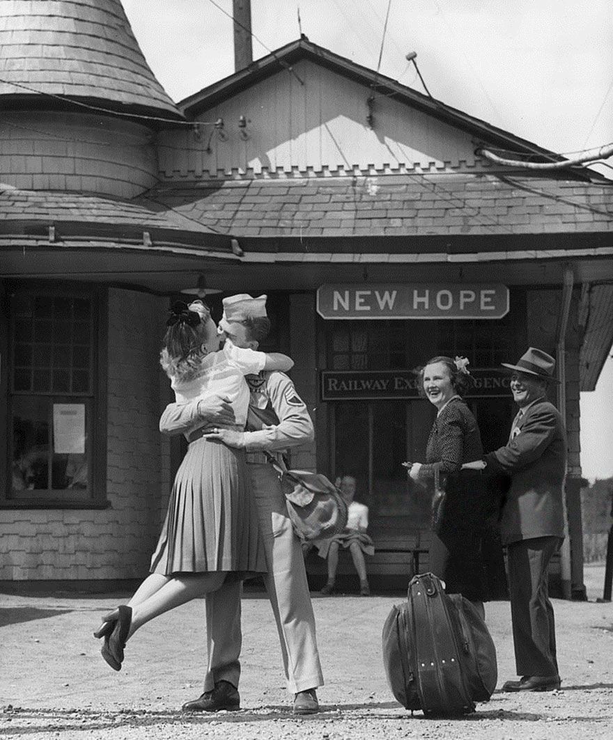 一组拍摄于战争期间的老照片,图片中的情侣们并不知道他们何时再相见,还会不会再相见。离别似乎总是爱情的敌人,加以战争背景,图片中的爱情变得轰轰烈烈,却不失温情。每一次深深的亲吻,每一次长久的相拥,我们总是想通过各种各样的方式把爱永久留住,但总有无法逾越的阻隔让爱情变成漂浮在空气中的涌动。