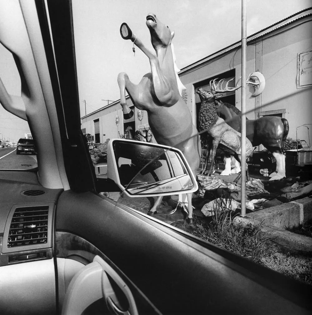 今天要推荐的摄影师名字叫李·弗瑞德兰德(Lee Friedlander)。 李·弗瑞德兰德是一位美国摄影师和艺术家,他开创了属于与自己独特的摄影语言。他的拍摄主题聚焦于美国街头,利用城市中的海报,围栏,各种各样的信号标志进行构图,镜面的反光及各类商业广告中的人像,无不诉说着商业都市里的繁华与冷漠。从一个特别的视角记录了美国六七十年代城市中的人间百态。 他眼中的光影错落而又充满秩序,传递的情感在怪诞中流露着孤独。 现代艺术博物馆的摄影馆馆长Peter Galassi说:“李·佛瑞兰德能够在看起来杂乱,不规则的场景前,找到一个有规律的、完美的拍摄角度,通过光和影、近和远的视觉效果对比,展现出日常生活格调的照片。”
