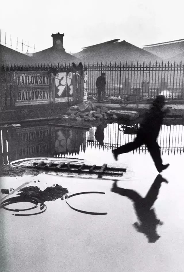 「圣拉扎尔车站背后 Behind the Gare Saint-Lazare」 by Henri Cartier-Bresson, 1932 “摄影就是运气。 当时那里有一个栅栏,我把相机伸进了栅栏里。 那就在于几分之一秒。” 83