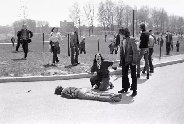 「肯特州立大学枪击案 Kent State Shootings」 by John Paul Filo, 1970 “我可以感到这个女孩身体紧绷, 最后她终于尖叫释放, 然后我像是回应她似的拍下了这张照片。” |