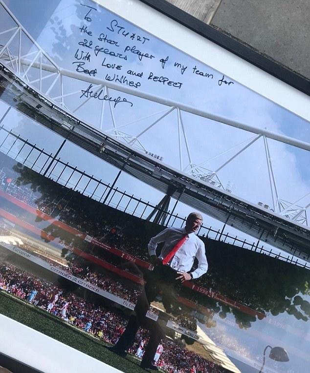 在离开阿森纳前,温格送给了俱乐部摄影师一张附有赠言的签名照片。