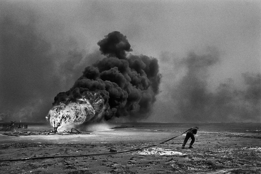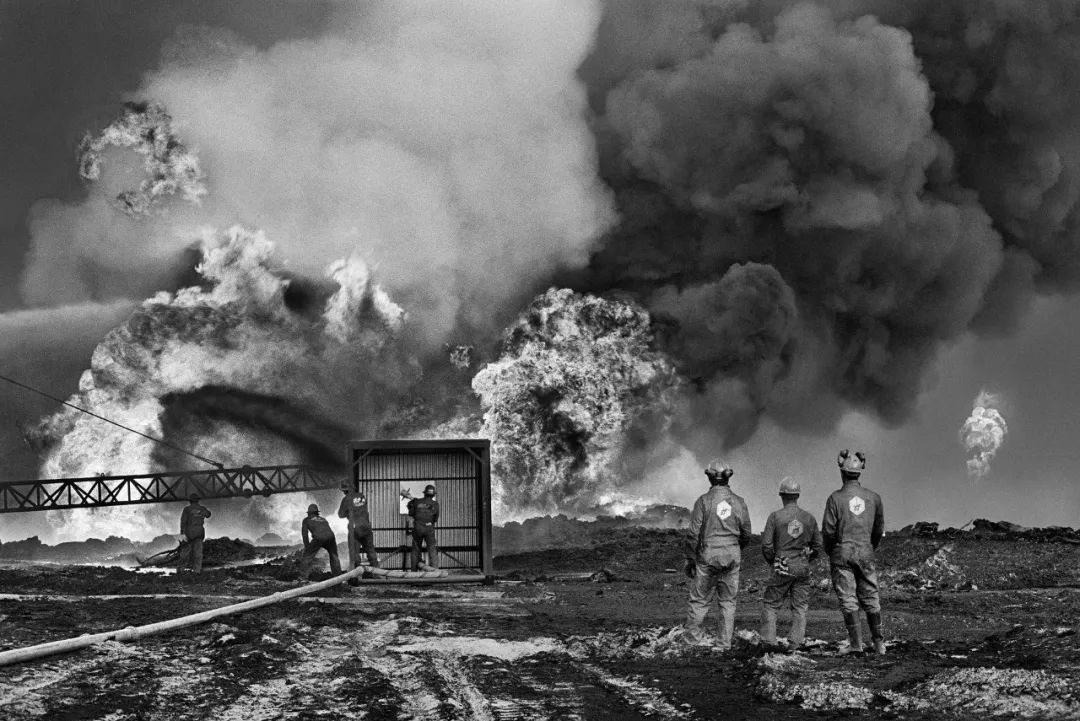 萨尔加多带着相机来到了第一线,激烈的爆炸声一度导致他耳聋。尽管如此,他仍数次推迟本应离开的时间,每天跟随消防队员冲锋陷阵,只为将这些震人心魄的画面揭示给世人看。 而这片土地曾有着风光美妙的科威特皇家花园,萨尔加多感叹道:「这就像人们打开了地狱之门,当人们再次回到这里时,会发现,昔日的天堂已沦为地狱」。