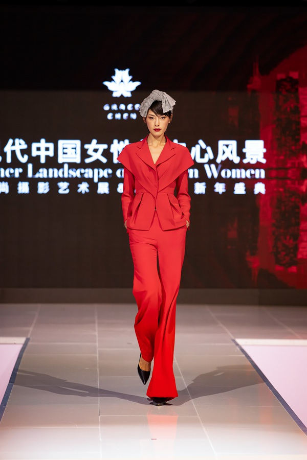 集艺术制片人、演员和散文作家于一身的才女石微雨女士以及她的好友、青年演员郑皓原朗诵了以《我孤独地漫游,像一朵云》为题的诗歌,带领人们进入意境纯美的世界;北京中天华资产评估有限责任公司董事长李晓红以深情朗诵《我可以将你等待》开启了活动的第二篇章“永恒的优雅”,更有方泊雅小朋友的芭蕾舞表演《堂吉诃德》、Cathy小朋友表演的街舞赢得阵阵掌声,Grace的女儿Maxine表演的萨克斯风《There will never be another you》拉开了第三篇章“逍遥”的序幕,整场晚会汇集了各个年龄层女性的精彩风貌,印证了美不分年龄、永不设限的理念。现场还献上了三场精彩的走秀,参与走秀的除了模特之外还有Grace的精英好友们,这也是Grace Chen历来走秀的特色,诠释了女性在每一个年龄阶段都拥有自己独特的美。 解读女性内心风景,T台之上演绎多重优雅 女性的内心世界是复杂纷繁的,Grace Chen以细腻的设计灵感探索女性的内心风景,因此此次活动以“唯我之境”、“永恒的优雅”、“逍遥”为主题带领人们进入三场异彩纷呈的时装盛宴。“唯我之境”系列意在全方位、多维度、深层次的探索女性丰富的内心世界,更好的定义和诠释女性的内心风景;“永恒的优雅”旨在展现女性与生俱来的优雅特性,这也是女性一生的永恒话题;“逍遥”则将目光聚焦于女性内心的精神释放,将广大独立女性塑造成高贵的精神流浪者,被爱包围的同时,也为女性的精神世界保留着一方净土,时刻不忘那份远离尘俗,超越任何约束的逍遥。