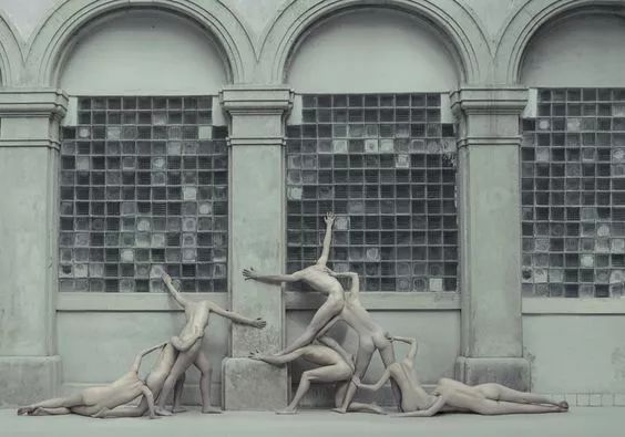 德国艺术家 Evelyn Bencicova 以大量裸体为材,重新塑造圣经里所描述暴力与战争的起源。Evelyn Bencicova 的作品风格非常鲜明,所有的人体都看不到脸,或坐、或躺、或趴、或扭曲交缠,男女肉体交迭出现在奇怪的地方。整个系列作品的色调以哥特式风格,黑暗,奇特、夸张为主旋律,作品中把人体组成一个个抽象的图案和符号,给人一种很强的仪式感。虽然作品本身并没有暴力元素,但仍然笼罩在一种令人不安的静止与恐惧之中,让观赏者感受到一种不舒适的压抑。