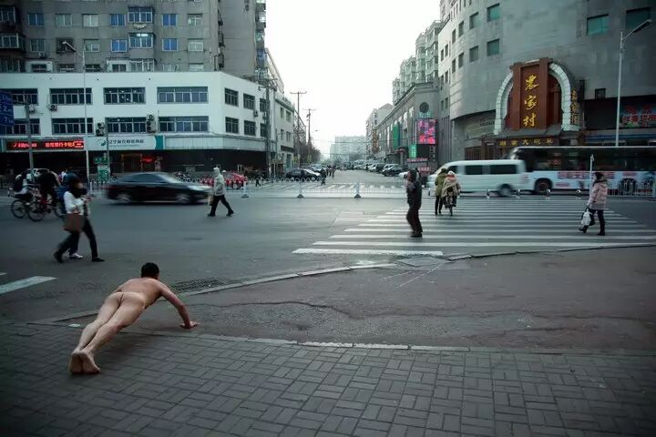 这一年“俯卧撑”依然在成长,网络是我超越美术馆和画廊高墙,可以永不落幕地呈现作品并与社会直接互动的理想空间。很欣慰“俯卧撑”这个艺术符号越来越被社会大众认知、接受和期待,每逢恶性社会事件发生,不管是不是“节点性公共事件”,善良的网民、朋友和媒体人就会提示我去“俯卧撑”,比我还急切的问去不去或去了没,例如最近蒙牛验出致癌物事件。还有很多无奈者甚至期望“俯卧撑”能帮助他们解决问题……“俯卧撑”与中国社会尤其是公共事件已然越来越密不可分。每逢重大事件就会联想到“俯卧撑”,看到“俯卧撑”就知道一定是重大事件。试想,在中国当代艺术中,有多少艺术家和艺术符号能被社会尤其是媒体、网络和普罗大众如此心领神会?当代艺术不是强调对社会的担当和干预吗?如果不能有效的进入现实社会,谈何干预?只好留在艺术圈自说自话,孤芳自赏。 《那一刻》2011年3月15日央视曝双汇“瘦肉精”事件 《那一刻》2010年10月20日23时许 西安 药家鑫交通肇事杀人案 作为一个受益于改革开放空气之先的广东人,我始终认为,广州要建世界文化名城,广东要建中国文化强省,中国要建社会主义文化强国,绝不能仅盯着传统文化,一股脑在老祖宗那找辉煌,必须着眼未来,勇于包容、颠覆和真正的创新。日常的升华是文化,文化的升华是艺术,艺术的升华是当代艺术。文化强大的标杆不是过去有多辉煌,而是当代艺术。西方尊重传统但不唯传统,他们把过去的辉煌非常好的维护和供奉,同时在当代艺术中找到文化的强大与新的自信。我们呢?包括岭南文化在内的中华文化的强大必须与时俱进。