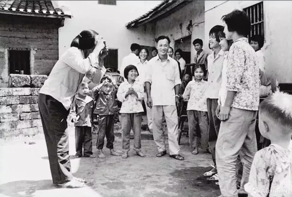 1982年 广东蕉岭 海外华侨回乡探亲带来一部傻瓜相机 村民兴致勃勃地拍照