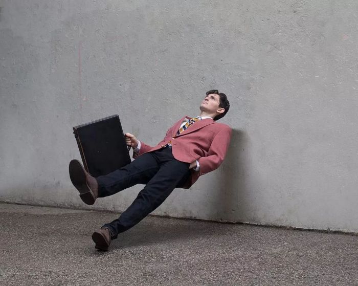 消失的重力 比起放火、扔烟雾弹,在本看来,表演倾斜、漂浮、抵抗重力,难度系数更高。 他一个人身兼摄影师、模特、视觉总监三个角色,往返于场景和相机监视器之间;还要不断跳跃、摔倒,并且“需要非常小心,才不至于把脖子弄断。”