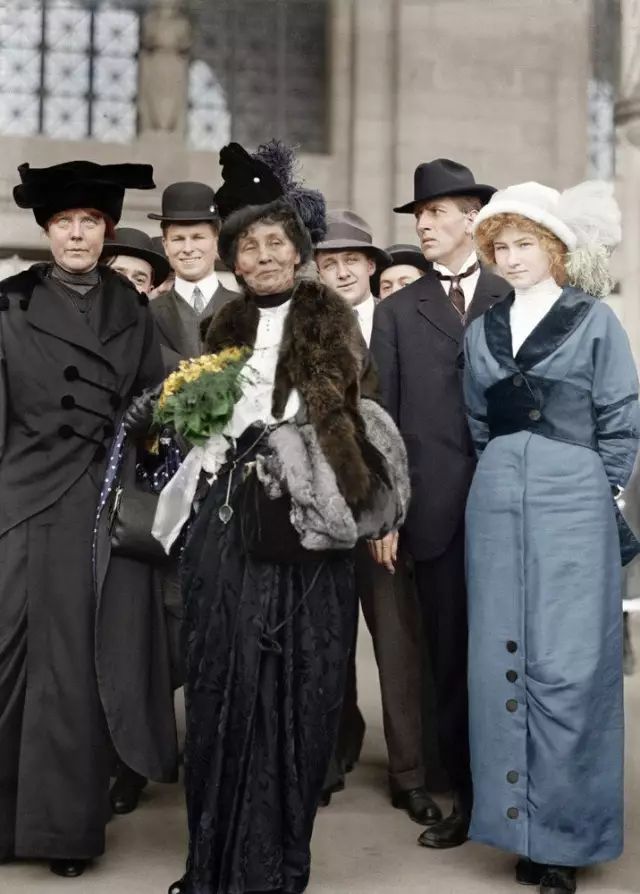 1913年,华盛顿,美国女权主义者,左边露西伯恩斯和站在旁边的埃米琳·潘克赫斯特夫人(中)。