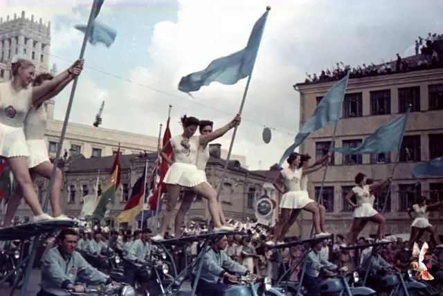 1957年,莫斯科,第6届“青年和学生的国际艺术节”场景,真实彩照。