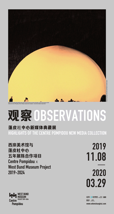 时间:2019年12月8日——2020年2月9日 地点:上海摄影艺术中心 本次展览呈现6位中国艺术家的作品:孙彦初、蒋鹏奕、吴越、范西、秦一峰和陈哲。虽然他们分别处于个人事业发展的不同阶段,在中国的曝光度也不尽相同,但均由中国最有影响力的摄影艺术画廊和机构的馆长和策展人推选而参与本次展览,相信他们值得在国际舞台上受到更广泛的瞩目。 观察——蓬皮杜中心新媒体典藏展