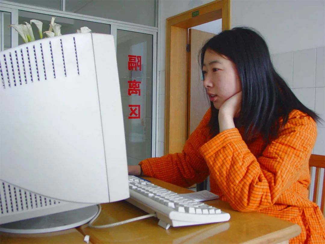2003年,护士徐玉叶在生活区唯一的电脑上看碟片。