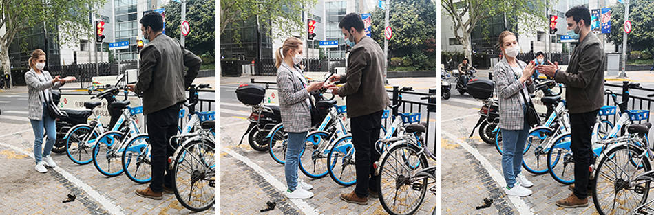 2020年4月12日,上海瑞金南路建国中路口,一对年轻的老外骑罢共享单车,立马从口袋里掏出免洗消毒液清洁双手。 Q:面对你眼前的这些照片你有什么遗憾吗? A:遗憾是免不了的,就拿三月十二日深夜来说,上海豫园一年一度传统的新春民俗灯会开始拆除。由于疫情,来自四川自贡的工人们在元宵节后抵达上海,经过14天隔离方准许动工。我当晚十点半冒雨进入现场,拍摄者就我一人。由于不在上班时间,周边楼层早已关闭,无法攀高,又因为下雨,也无法借助无人机视角。面对高达5、6米的巨型灯彩,遗憾缺乏一个较高的拍摄角度,只能在地面忙乎了。 Q:你使用什么相机?在哪里学习的摄影,哪位摄影师曾经影响过你?为什么? A:无论胶片还是数码,我用过相机不少。但近年来图轻便,较多使用松下卡片机和华为手机拍摄。弱光下则喜用富士X—T2相机,16 mm/f 1.4镜头。摄影最初是我的爱好,后又成了我的工作。早年曾参加过中国摄影家协会主办的中国摄影函授学院的学习。说到哪位摄影师曾经影响过我,想来当属同城的雍和先生,他的作品记录都市变迁,饱含人文关怀,总是恰到好处找到一个时空交汇点,用摄影语言加以诠释。由于同在上海,相识多年,看他的作品很有一种熟悉的亲切感,获益良多。 Q: 你认为什么是摄影? A:我认为简而言之,摄影就是对生活的观察和扫描。重要的不在于举起了相机,而是在于睁开了思想的眼睛。 王志强在自述中说,“现今不像当年,怀揣记者证,进出拍摄时可以名正言顺。诸如医院病房、隔离点、检查站之类较易出画面的地方肯定非我所属。因此,我更多的还是着眼于在疫情下的城市日常生活图卷,百姓们应对疫情的举止态度。疫情之下,生活“罩”样在继续!作为抗疫最明显的标识,人们必须戴着口罩走进日常的生活、工作、旅途以及休闲。非常时期的非常画面形成了一道非常的风景线。于是乎,围绕口罩,多多“罩”影,成了我镜头中的聚焦点。应该说,疫情带给了我们太多的心“罩”不宣,为了明天,理应深情地记下今时!” |