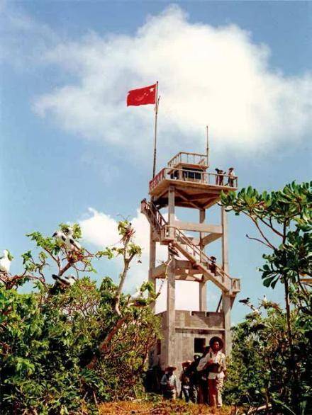 《五星红旗飘扬在西沙群岛》西沙和五岛,1974年4月 记者:为摄影艺术创作您先后遭遇五次车祸和一次船险,骨折14根。您为了进行摄影艺术创作,可以说是摄影界的“拼命三郎”。 伍振超:为歌颂自卫反击作战的西沙英雄军民,我深入西沙群岛第一线长达三个多月,克服了晕船呕吐、热带过敏,战胜了酷暑等许多困难。比如我拍《五星红旗飘扬在西沙群岛》那张照片时,当时我有所考虑,战士在守护西沙,怎么样表现这个主题,表现五星红旗飘扬在西沙群岛。我在几个岛屿间比较了一下,选择去和五岛。部队官兵就建议不要到和五岛去,因为要经过200米深沟,那个地方海军战士都呕吐。部队首长说,你身体不好,负伤还没痊愈,建议你不要去。我说为了表现西沙,为了拍摄《五星红旗飘扬在西沙群岛》,那个地方有代表性,那里有一个哨所,塔比较高,岛上还有几种鸟,很能代表海岛的特点,必须去,再艰苦也要去。 后来还是决定去了。当时我呕吐得特别厉害,黄胆水都要呕吐出来了。海军同志都说我们过去都要呕吐,何况你?但还是渡过了难关,到了那个岛上。到了岛上,拍那张照片的时候,虽然是有些摆拍,但必须要那么搞,不那么搞表现不出来,因为红旗挂着没有风飘不起来,就不好看,下面没有人巡逻的话,光拍那个塔,再一个红旗飘,没有人也不好看。我去了告诉巡逻的民兵,你们就耐心等待,现在没风,我不能拍这个照片,拍出来没有风,红旗悬着就不好看。后来等到上午11点半的时候,开始有一朵一朵的云飘过来了,也刮起风来了,我就告诉那些民兵,现在你们开始巡逻了,往前走,现在有风了,红旗飘起来了。他们往前走的时候,我按下了快门,这张照片拍成功了。 拍完了以后,这张照片在新华社冲洗出来的时候他们说在剪裁方面有些为难,照片光要下面的人吧,不要红旗,这不行;光要红旗吧,不要下面巡逻的民兵也不好看。我说构图已经基本上完整了,这个民兵全要,红旗也全要,你把完整的照片搞下来就完了,不要光突出民兵,或光突出红旗,按这样剪裁就可以了。最后是按我的意思剪裁的。